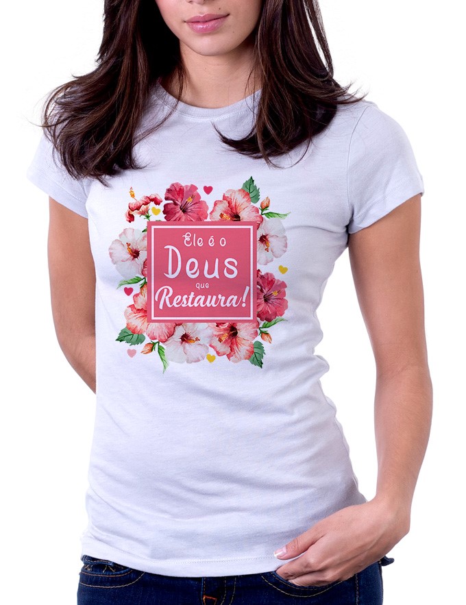 Camiseta Baby Look Básica Soft - Ele é o Deus que Restaura