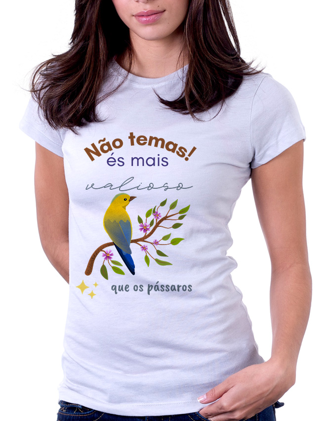 Camiseta Baby Look Básica Soft - Não Temas! És mais Valioso que os Pássaros