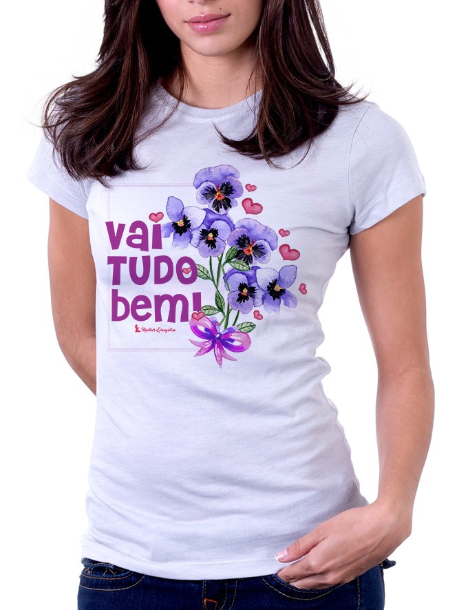 Camiseta Baby Look Básica Soft - Vai Tudo Bem (Imagem Flores e Laço)